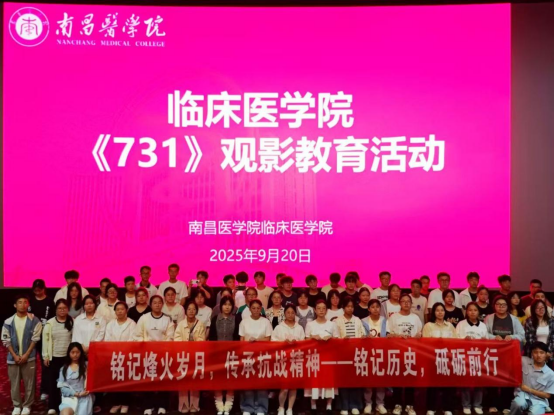 为深化“习语医心 红医筑梦”育人实践,引导同学们铭记历史、传承抗战精神、筑牢医学伦理,临床医学院于9月20日至21日,组织500名学子赴南昌万达影城观看历史题材电影《731》。