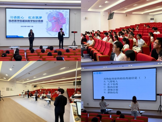 大赛覆盖2023级至2024级全体在校学生,以团队竞技形式开展,是学院“习语医心 红医筑梦”系列育人活动的重要组成。本次大赛紧扣“以赛促学、以学促用、以用践廉”宗旨,设必答题、抢答题、选答题与加时赛四环节,题库涵盖解剖学、生理学等基础医学核心课程,兼顾理论知识与临床场景化应用。