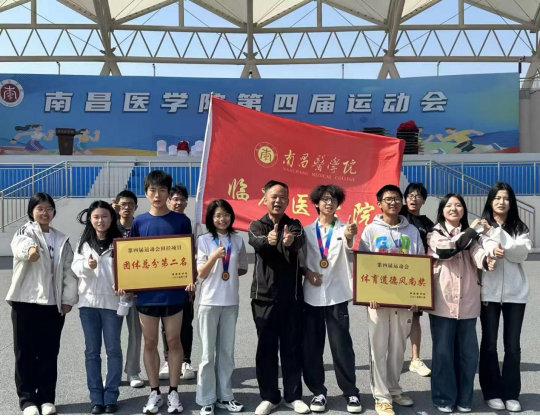 南昌医学院第四届运动会于近日顺利闭幕。临床医学院代表队凭借卓越的竞技表现与良好的精神风貌,荣获田径项目团体总分第二名,并同时获评“体育道德风尚奖”,实现了竞赛成绩与精神文明双丰收。