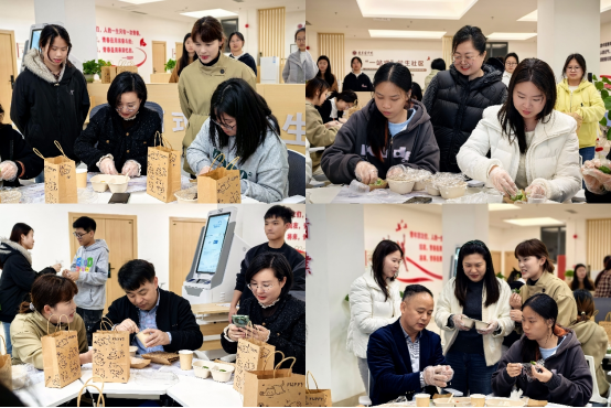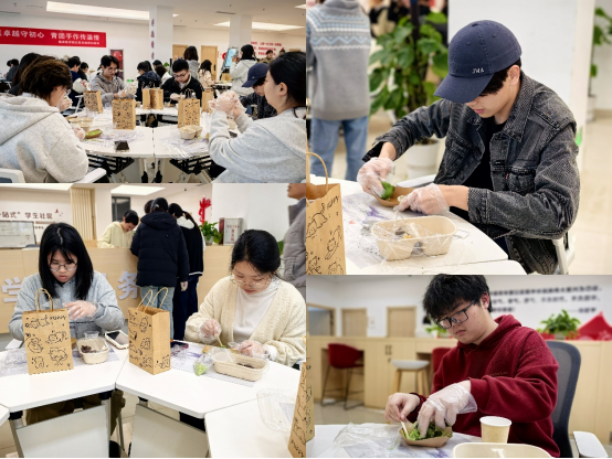 半小时后,第一批碧绿油亮、香气四溢的青团新鲜出炉。同学们将青团分装成盒,一部分相互分享品尝,另一部分由学生代表送至学院教职工手中,以清甜滋味传递敬意与感谢,让校园守护者们感受到节日暖意。